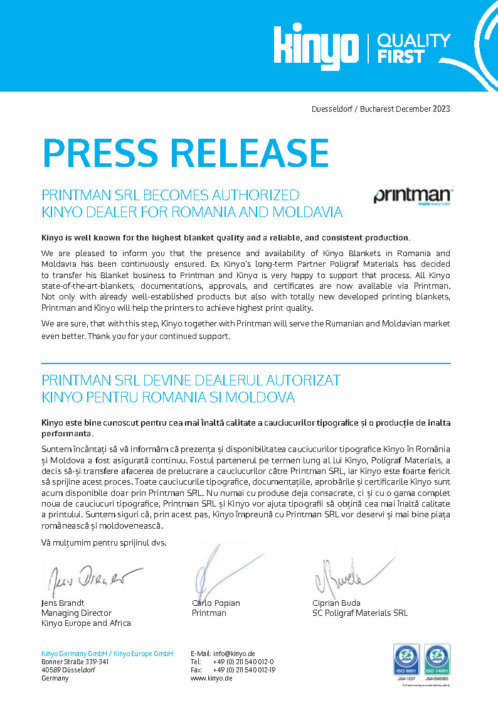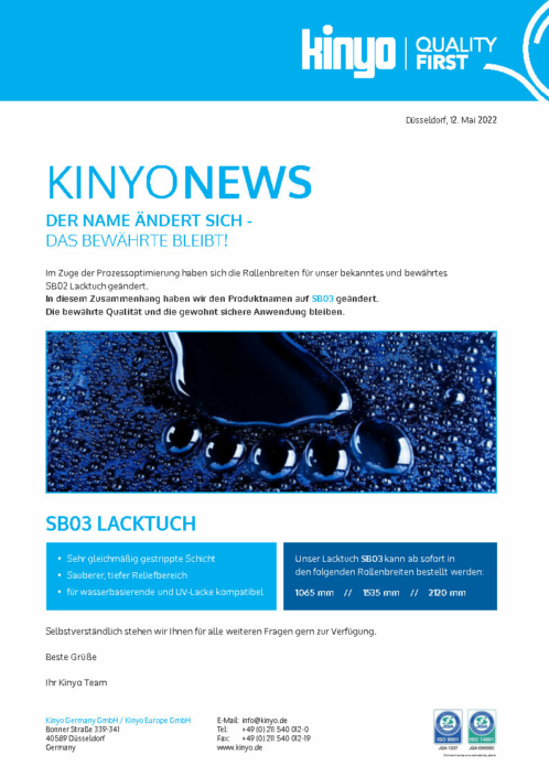 Bei Kinyo machen wir eine Sache und diese machen wir richtig gut! Unser Fokus liegt auf der Herstellung und Lieferung von Drucktüchern höchster Qualität. Wir legen Wert auf Konsistenz und Exzellenz in allen Bereichen unseres Geschäfts, von der Forschung und Entwicklung bis hin zur Kundenbetreuung.